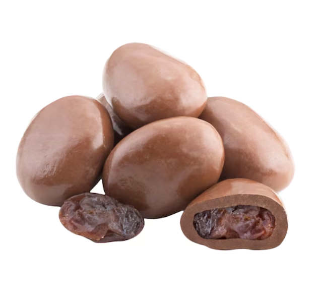 زبيب طري مغمور بطبقة شهية من الشوكولاتة الحلوة.