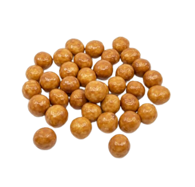 حبات بندق مغطسة في شوكولاتة ممزوجة بنكهة الكراميل اللذيذة.