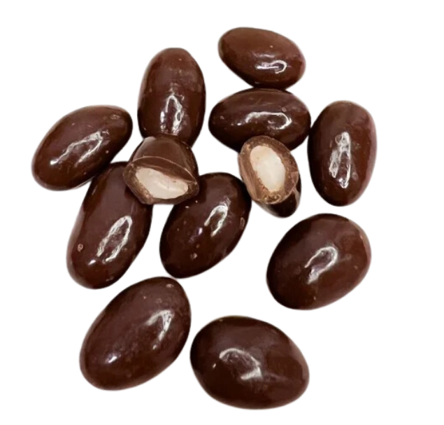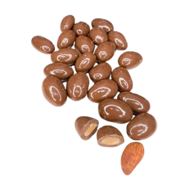 حبات لوز طازجة مغطاة بطبقة غنية من الشوكولاتة