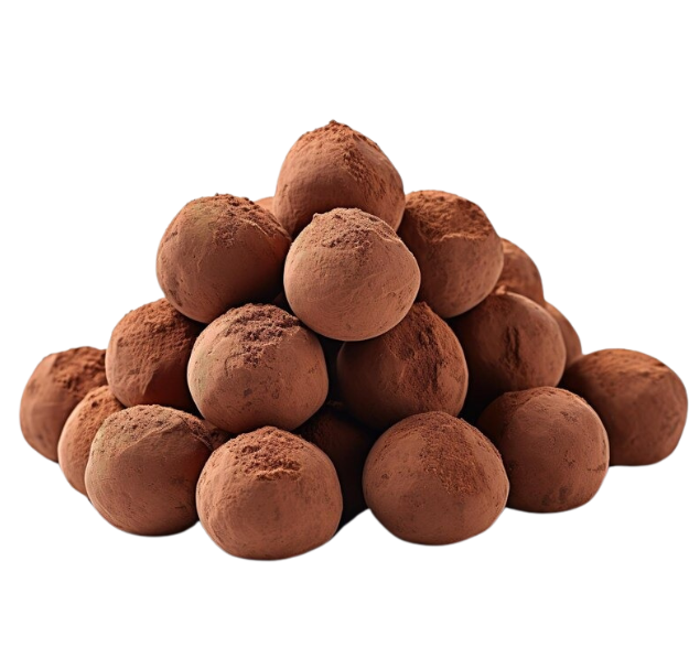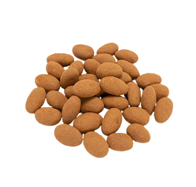 لوز مغلف بالشوكولاتة مع طبقة من الكاكاو الناعم المغبر.